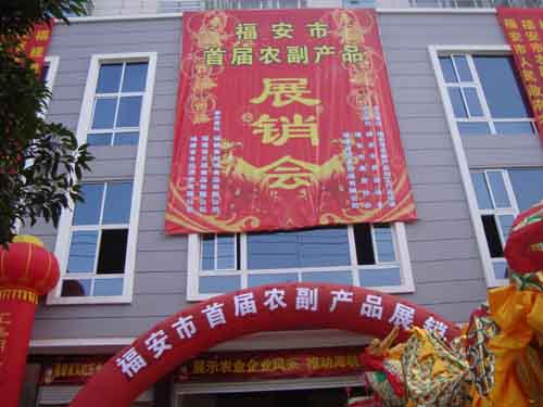福建新味食品有限公司發(fā)起舉辦福建省福安市首屆農(nóng)副產(chǎn)品展銷會,在福安市農(nóng)副產(chǎn)品加工行業(yè)協(xié)會的大力協(xié)助下,于2009年1月17日-21日開展。本屆展會聚集福安市農(nóng)業(yè)產(chǎn)業(yè)化省級重點龍頭企業(yè)在內(nèi)的38家農(nóng)副產(chǎn)品企業(yè),產(chǎn)品品種囊括蜜餞、果脯、糕點、餅干、水果、竹筍、水產(chǎn)品、糧油、調(diào)味品、酒類、木制餐具等。