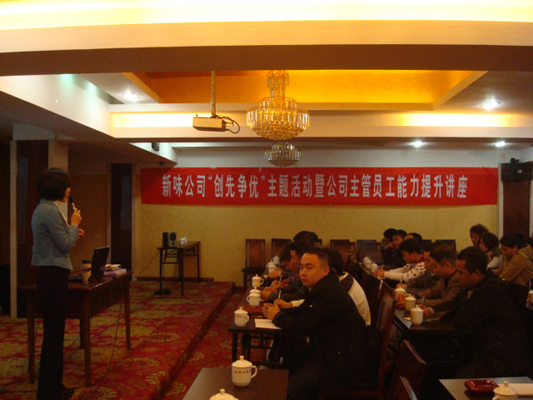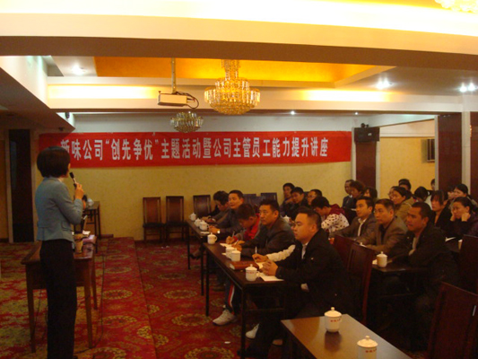 為進一步推進“創(chuàng)先爭優(yōu)”活動深入開展,11月27日,在市非公經(jīng)濟創(chuàng)先爭優(yōu)指導組的指導下,福建新味食品有限公司在福安市金源大酒店五樓舉行“創(chuàng)先爭優(yōu)”主題活動暨公司主管員工能力提升講座。此次講座以“組織創(chuàng)先進,黨員爭優(yōu)秀,企業(yè)有發(fā)展,員工得實惠”為指導,旨在通過對主管員工的培訓,增加其精神食糧,拓展其見識面,為提升員工創(chuàng)造能力打下堅實基礎。講座特邀深圳新高度企業(yè)咨詢有限公司張慧女士主講。講座分為企業(yè)唯一不變的就是改變、企業(yè)創(chuàng)造最佳成果的兩大思維、創(chuàng)造最佳成果的三大能力三個專題,深度詮釋了企業(yè)創(chuàng)新的重要意義及創(chuàng)新思維的培養(yǎng)?,F(xiàn)場氣氛活躍,通過理論講解、現(xiàn)場討論等多種形式,極大地調動了參會人員的積極性,公司員工紛紛表態(tài)要將“創(chuàng)新是企業(yè)的生命力”的理念貫穿于工作始終,講座收效良好。共有39名該公司主管員工參加了此次講座。